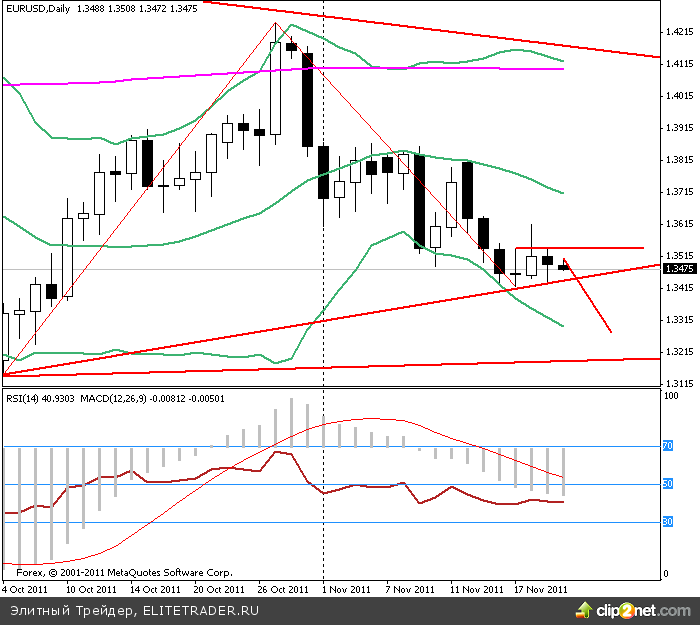 Доллар в основном окреп, так как неделя началась с ухода от рисков. Йена и франк также получили спрос как убежища, так как озабоченность по поводу европейского долгового кризиса сохраняется и на фоне спекуляций, что в Конгрессе США Супер комитету не удастся прийти к соглашению по сокращению дефицита до намеченного срока. Разница в доходности расширилась в зоне евро, между испанскими 10-летками разница в доходности над Германским выросла почти на 21 bp примерно до 456 после того, как вновь избранный испанский премьер-министр Rajoy сказал, что "трудные времена впереди". Новости о том, что ЕЦБ покупает итальянские облигации способствовало ослаблению роту доходности. Исполнительный член правления ЕЦБ Старк сказал, что долговой кризис распространяется и на «основные» экономики, и что ситуация, скорее всего, снизит темпы роста. EUR/USD упал ниже 1.3500.