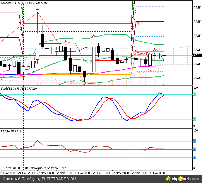 Технически USD/JPY торгуется в диапазоне 76.80-77.35. Движение пары контролируется. Ей не дают сильно вырости, впрочем, как и упасть.