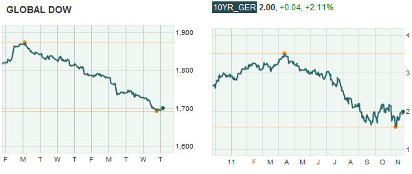 Debt crisis now at German doorstep, Market Watch Аукцион немецких государственных бондов технически провалился в среду, подчеркнув опасения о том, что долгосрочный кризис суверенной задолженности угрожает теперь и локомотиву еврозоны. Продажа десятилетних бундов на 6 миллиардов евро (8.1 миллиарда долларов) завершилась покупкой лишь на €3.889 миллиардов. Bundesbank, который проводит аукционы от имени немецкого федерального правительства, одобрил ставки лишь на 3.644 миллиарда евро. Банку осталось принять эстафету и удержать оставшиеся 2.356 миллиарда евро, или 39% от предложения.