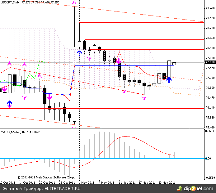 Сопротивление расположено на отметках 78.10, 78.40, 79.00 и 79.56 (4-летняя линия нисходящего тренда). Если доллар сможет преодолеть эти уровни, текущий долгосрочный нисходящий тренд развернется