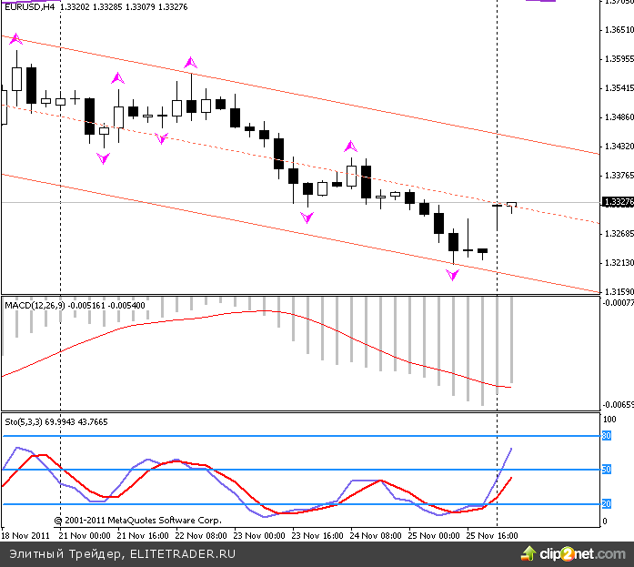 Технически, EUR/USD хотя и открыл день с приличным разрывом (гэпом) вверх, пока нет признаков того, что сегодня он будет этот гэп закрывать. Конечно, пара движется в правильном 4-х часовом нисходящем канале, но верхняя граница, к которой она может скоректироваться проходит около 1.3445... Тренд по прежнему нисходящий, но даже на нисходящем тренде бывают значительные восходящие коррекции..