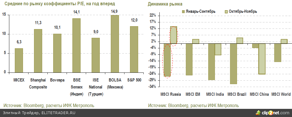 В декабре мы ожидаем возвращения инвесторов на рынок, внимание которых привлекут ускорившийся экономический рост на фоне низких оценок компаний (дисконт к аналогам составляет 50%), рост корпоративных прибылей, а также высокие цены на сырьевые товары.