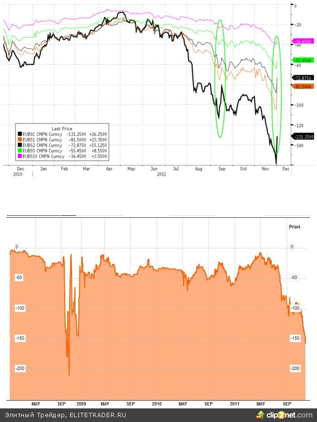 Так вот по годовому евро базисному свопу ушли к уровням осени 2008, т.к. по сути сейчас евробанкам так же сложно, как и в самый разгар кризиса 2008. Система держится на соплях.