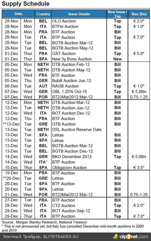 Но даже в декабре 2008 были спокойнее, поэтому не думаю, что будут свирепствовать. Этот месяц должен быть спокойнее, чем последние 4 месяца. Крупные размещения для ПИГС уже завершились, еврокомиссия и ЕЦБ (не считая понижения ставки через неделю и заседания рабочей группы в середине недели) ничего принципиального нового не изобретут в этом году.