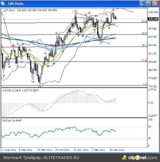 В целом, их торговля выглядит как «боковик» на достигнутых высотах, но если индексы DJ и S&P забрались уже очень высоко, и начнут отсюда снижаться, то наши индексы могут предвосхищать падения заокеанских коллег и демонстрировать сильные минуса. Именно поэтому пока я не призываю к совершению новых покупок, к тому же всегда новогодние разрывы закрывается индексами, а у индекса ММВБ «гэп» расположился на уровне 1402,02-1403,56 пунктов, а у индекса РТС на уровне 1380,49-1386,21 пунктов. Так что об этом стоит помнить