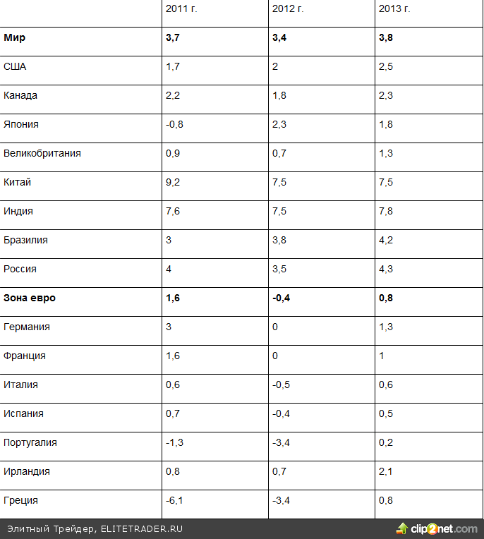 Прогноз темпов роста ВВП, %