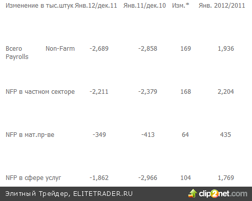 * Насколько отличается изменение в январе 2012 от изменения числа NFP в 2011 г.: падение числа NFPв январе 2012 г. было меньше падения в январе 2011 г. на столько тыс. штук. 243 тыс. получились в результате сезонных поправок BLS.