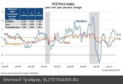Единственный способ решить спор в теории – обратиться к траектории инфляции. Если рынки труда слабы, общепринятая практика говорит, должно быть последовательное понижательное давление на цены. Аргументы в пользу последовательного давления на цены не столь очевидны. Похоже, что измеренная инфляция движется в сторону долгосрочной цели в 2% Федерального Комитета по Открытым Рынкам.