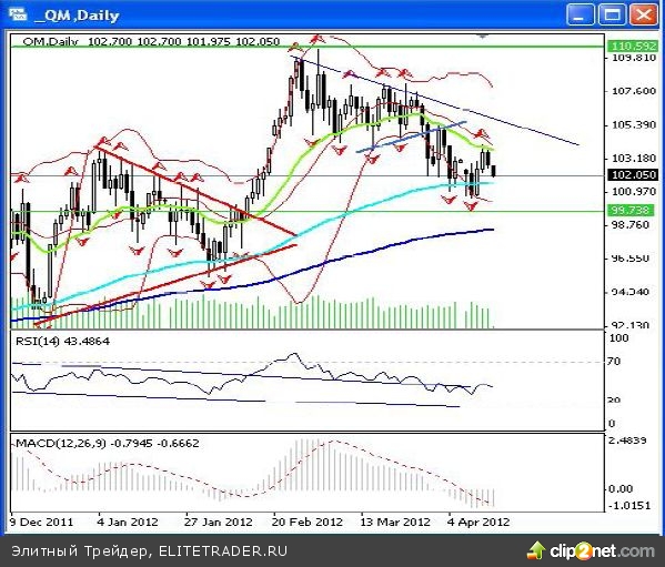 РЫНОК НЕФТИ Расстановка сил на рынке нефти в последние сессии меняется очень быстро, виной тому переменчивые настроения на западных и европейских площадках. Вот и в пятницу, цена на нефть марки Light продолжила снижаться. На текущий момент котировки зажаты между уровнями скользящих средних: сверху сопротивлением выступает ЕМА21 на днях, а снизу в качестве поддержки можно выделить ЕМА100 на днях. В принципе еще один заход вниз не помешает котировкам нефти. Наиболее вероятным видится сценарий образования еще одной конвергенции