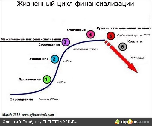 Что есть финансиализация (монетизация)? Проще говоря, это финансовое заражение и размывание всех уровней экономики стимулирующим левереджем, долгами, непрозрачностью, спекуляциями, финансовыми махинациями, сговорами и кумовством в капитализме, т.е. нахождением в собственности у элит регулирующих и законодательных органов власти. Есть и ещё одно определение из Википедии: «Финансовый левередж, перекрывающий акционерный (собственный) капитал, и таким образом финансовые рынки начинают доминировать над традиционной промышленной и\или сельскохозяйственной экономиками».