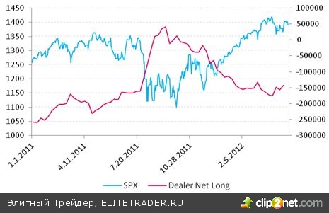 Рисунок 3: S&P 500 и чистые длинные позиции дилеров