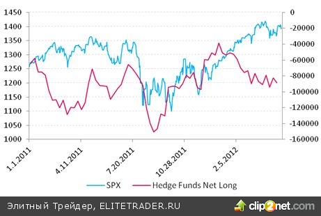 Чистые короткие позиции хеджевых фондов сократились на 2%, однако такие еженедельные изменения с начала марта носят цикличный характер и не отражают изменение отношения менеджеров хедж фондов к ситуации на рынке (рисунок 4).