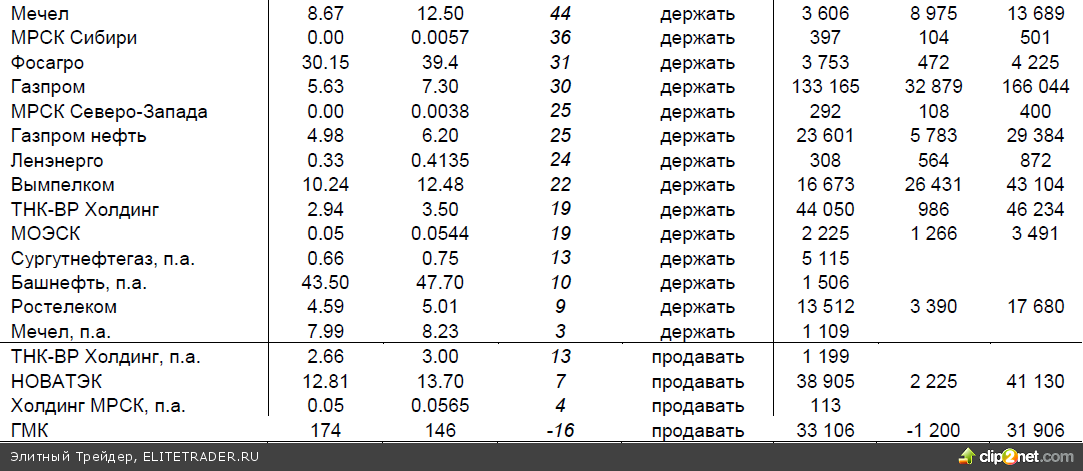 По 29 бумагам выставлена рекомендация «покупать», по 14 – «держать», по 4 – «продавать».