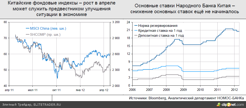 В отличие от Европы, где экономическая рецессия все более очевидна, динамика китайской экономики, по-прежнему, укладывается в сценарий soft landing. Важно отметить, что монетарные власти Китая, по сути, еще не приступали к полноценному стимулированию экономического роста (в декабре и феврале было осуществлено символическое снижение нормы резервирования для банков с 21.5 до 20.5 %). Если негативные тренды в экономике будут усиливаться (пока этого не видно), Народный Банк Китая может задействовать весь инструментарий кредитно-денежного стимулирования, в т.ч. осуществить снижение основных процентных ставок, благо инфляция в диапазоне 3-4 % не вызывает уже такого беспокойства, как в середине прошлого года, когда рост потребительских цен приближался к 7 %.