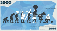 Не зависимо от того, уйдет ли Греция по доброй воле, или ее выгонят, это будет крайней мерой, которая потребует, в числе прочего, создание новой валюты - новой драхмы. По мнению британской компании De La Rue, которая печатает все, от британский фунтов стерлингов до новейшего образца иракского динара, создать новую валюту будет сложно. Сколько нужно времени, чтобы спланировать и ввести в обращение новые банкноты и монеты? "Минимум четыре месяца", - считает Марк Крикетт, консультант De La Rue. Возможно, в промежуточный период - эти самые четыре месяца - в хождении будет временная национальная валюта. А нам останется только откинуться на спинку кресла и наблюдать за тем, как силы спроса и предложения делают свое дело. В этом случае, пожалуй, больше предложения, чем спроса. "Новая валюта упадет ниже городской канализации, а инфляция уйдет в стратосферу", - считает Диксон.