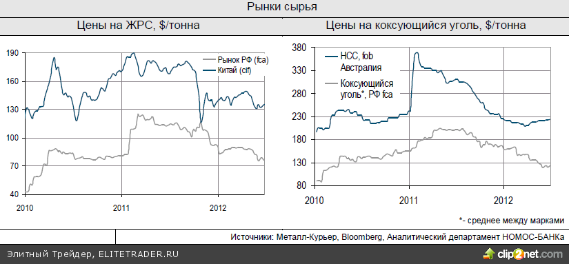 Однако к концу месяца на рынке появились первые признаки стабилизации и, возможно, разворота тенденции: все-таки, несмотря на слабый спрос, большинство российских экспортеров достаточно уверенно закрыли книгу заявок на июль, а снижение цен на сталь привело к сокращению производственной программы на ряде украинских предприятий, операционные издержки которых выше, чем у российских конкурентов. Кроме того, неплохую устойчивость в последние недели показали сырьевые рынки: котировки железной руды не опускаются ниже уровня $130 за тонну (cif Китай), достигнутого еще несколько месяцев назад, а ситуация на мировом рынке коксующегося угля из-за продолжающихся коротких забастовок на предприятиях BHP Billiton выглядит напряженной даже в условиях слабого спроса. Все это вместе позволяет говорить о том, что попытка производителей плоского проката поднять экспортные цены в начале июля, переломив негативный тренд последних двух месяцев, может оказаться успешной.