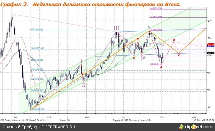 В среднесрочной перспективе, смягчение кредитно-денежной политики, которое предприняли ЕЦБ и НБК поддержит цены на нефть. Во второй половине марта текущего года было завершено формирование фазы роста, которая началась с первых дней 2009 года. В настоящее время формируется плоская коррекция, как следует из графика 2. Минимальная точка коррекции уже достигнута. Ждем роста котировок Brent к отметке $115.