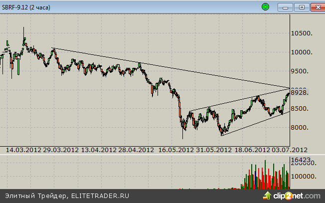 Фьючерс на акции "Сбербанка" рассмотрим подробнее. Ниже представлен двухчасовой график котировок по состоянию на закрытие 26 июля.