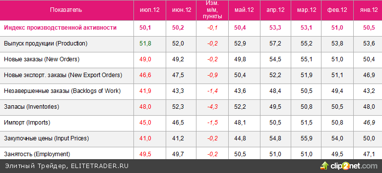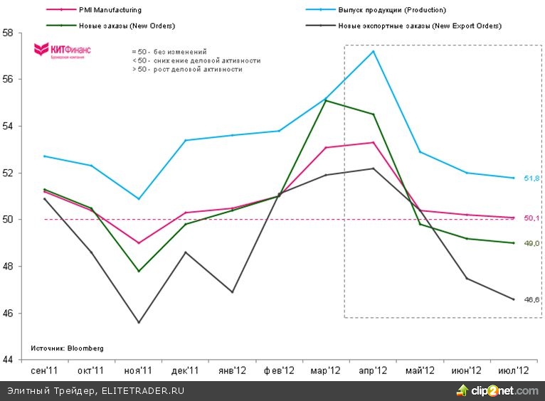 Согласно опубликованным 1 августа данным Национального бюро статистики и Федерации логистики и закупок Китая на основе опроса крупнейших 820 компаний из 31 отрасли экономики, индекс деловой активности в промышленности - PMI Manufacturing - в июле продолжил сокращение и составил 50,1 пункта (ожидалось 50,5 пункта), что стало минимальным значением за последние 8 месяцев.