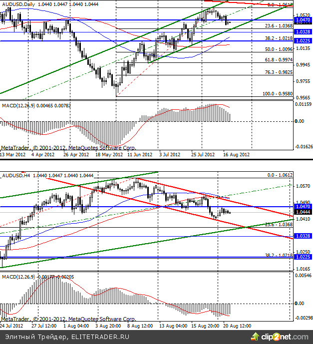 Н4. Также сформирован и коррекционный канал - 1,0612 - 1,0528 - сопротивление, 1,0410 - поддержка. Сейчас цена в середине канала, а также в треугольнике (для Н1), что усиливает неопределенность. Рискованно можно запланировать покупку от поддержек основного и коррекционного каналов и 23,6% уровня FIBO. Рискованно, так как касание будет уже пятым (для основного канала).