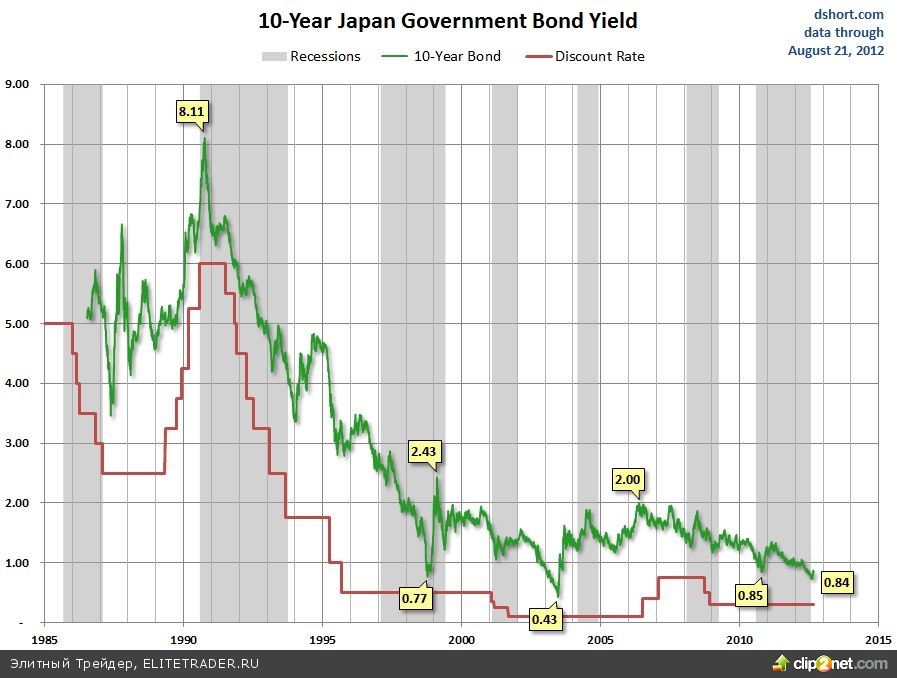 США – это, безусловно, не Япония. Однако опыт Страны Восходящего Солнца (и падающих ставок по гособлигациям) все же заставляет задуматься над тем, когда и при каких обстоятельствах будет иметь место разворот тренда по казначейским нотам США.