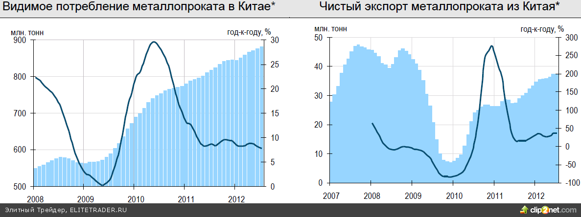 Экономическая ситуация в мире продолжает ухудшаться. В третьем квартале фактически начался спад в глобальной промышленности. Ещ? более усилился спад в промышленности Еврозоны, причем особенно сильно пошел вниз промышленный сектор Германии. На грани остановки оказалась американская промышленность - индекс ISM, характеризующий деловую конъюнктуру в промышленном секторе США, впервые со 2-го квартала 2009 г. оказался ниже отметки 50 пунктов, служащей водоразделом между ростом и падением. Не видно пока признаков улучшения ситуации в промышленности Китая, хотя новости о стимулирующих программах со стороны китайского Правительства появляются достаточно регулярно. Так на этой неделе национальная комиссия по развитию и реформам одобрила инфраструктурные проекты в области железных дорог общей стоимостью до 1 трлн. юаней (более 2 % ВВП). Эти меры могут вызвать некоторое оживление в 4-ом квартале и компенсировать сокращающийся внешний спрос. В августе мы получали преимущественно негативные новости из Китая, при этом наиболее тревожным сигналом стал настоящий обвал цен на железорудное сырье, что может служить четким индикатором ослабления внутреннего спроса. Подобная динамика рынка никак не согласуется с планами по увеличению инфраструктурных инвестиций
