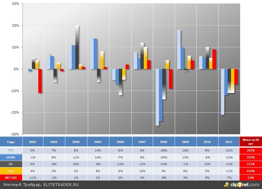 Рис.1: Процентные изменения цен активов в сентябре (2002 – 2011 гг.)