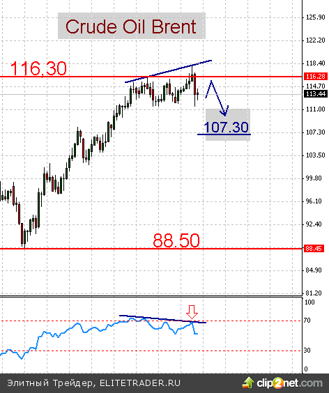 По нашим оценкам, сложившаяся техническая картина на рынке нефти предполагает завершение восходящего тренда от минимумов июня 77,30$ Light и 88,50$ Brent. Прорыв цен ниже областей поддержки 94$ Light и 111,50$ Brent соответственно определит нисходящий сценарий с целями 91,70$ и 107,30$ соответственно. В этой связи, мы рекомендуем придерживать коротких позиций в рамках внутридневных и позиционных торговых стратегий.