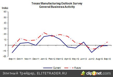 ФРБ Далласа сообщил в отчете Texas Manufacturing Outlook Survey о росте индекса деловой активности в промышленности Техаса в сентябре до -0,9 пункта с августовских -1,6 пункта. Производственный индекс, ключевой показатель состояния условий производства, вырос с 6,4 до 10 пунктов. Индекс занятости остается положительным, снизившись, тем не менее, до 5,9, самого низкого значения более чем за год.
