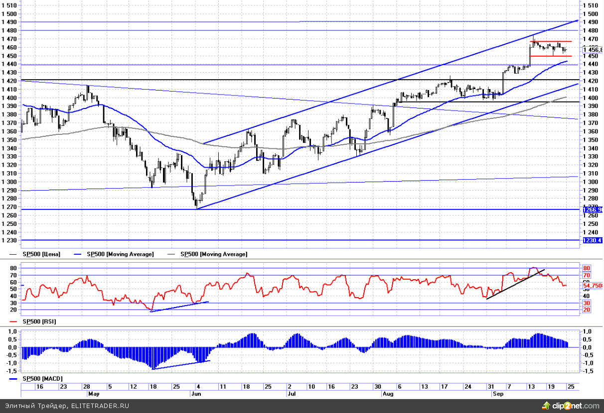Вторую неделю американские индексы консолидируются в районе многолетних максимумов достигнутых на фоне решений мировых ЦБ о расширении монетарного стимулирования. Индекс широкого рынка S&P500 день за днем порываясь вырваться из боковика, к концу сессии неизменно возвращается ближе к 1460 пунктам.