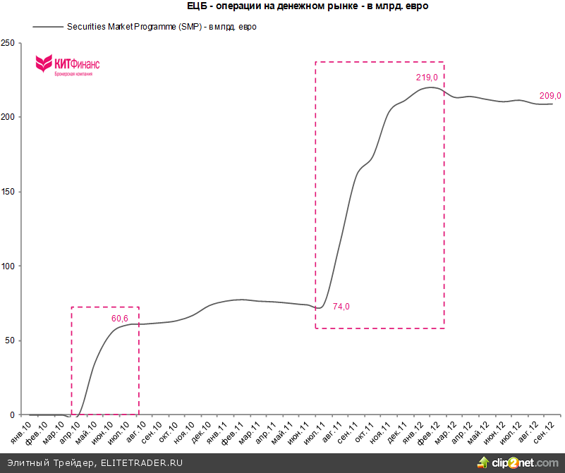 В сентябре 2012 г. ЕЦБ озвучил переход от SMP к программе “прямых монетарных операций” - Outright market Operations (OMT).