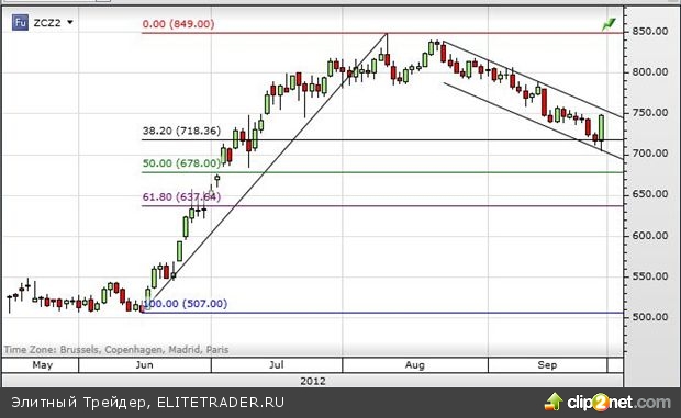 Кукуруза CBOT, декабрь 2012 г., долл. США/бушель – Источник: Saxo Bank