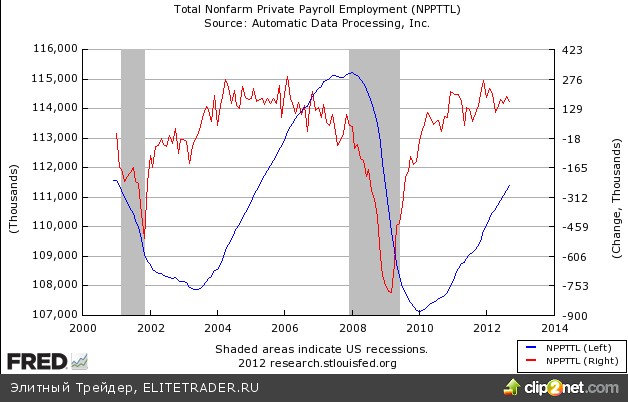 Официальные данные по Non-Farm Payrolls будут опубликованы в пятницу, и не смотря на существенно расхождение в динамике показателей в августе, в целом они имеют существенную корреляцию.