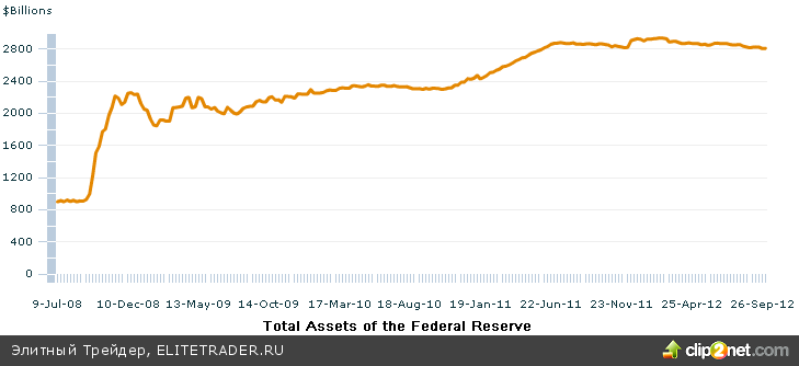 Но как видим, с того момента цены только падали, и сегодняшний недельный отчет EIA вероятно вновь подтвердит тенденцию к снижению. В совокупности с манипуляциями цифрами по безработице, благосклонность к нынешнему президенту все же более очевидна, не смотря на сообщения СМИ о росте популярности Ромни после первых публичных дебатов. К слову сказать, букмекеры по-прежнему ставят на Обаму, который в отличие от предвыборных обещаний Ромни, будет холить и лелеять руководство ФРС и проводимую ей политику выкупа активов и раздувания баланса, эффект от которой мы вскоре можем увидеть.