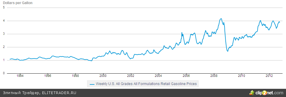 В отсутствии публикации в понедельник важных статданных за океаном, обратимся еще раз к пятничным цифрам по уровню безработицы, в единственно кажущемся верным контексте предстоящих выборов президента США, до которых осталось меньше месяца. Неожиданный запуск QE3 на сентябрьском заседании навел на мысли о возможном получении определенных политических очков республиканским кандидатом, вследствие роста цен на энергоносители и в частности бензин, которые на тот момент находились в опасной близости от критического рубежа в $4 за галлон.