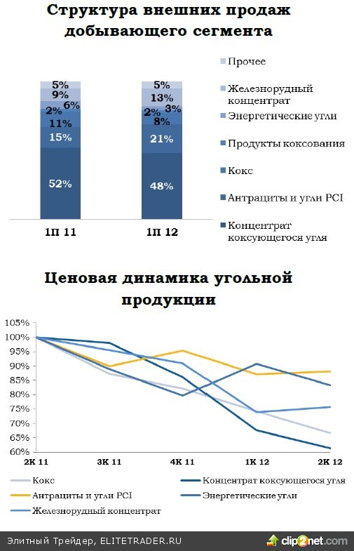 Порядка 13% продаж в сегменте приходится на железную руду, остальное – угольная продукция.