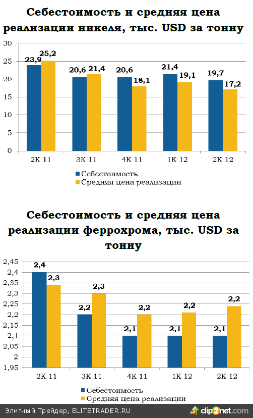 В первую очередь это связано с ценовой конъюнктурой, которая складывается на рынках цветных металлов и сплавов. Цены на никель за год упали на 25–30%, на ферросилициевые сплавы – на 20–25%. Цветные металлы выраженно процикличны, и на фоне замедления мировой экономики уверенное восстановление выглядит сомнительным. Новости о запуске стимулирующих мер со стороны ЕЦБ и ФРС подстегнули локальный рост в 3К12, но, судя по всему, этот рост исчерпан. Фундаментальных факторов для восстановления цен по-прежнему нет.