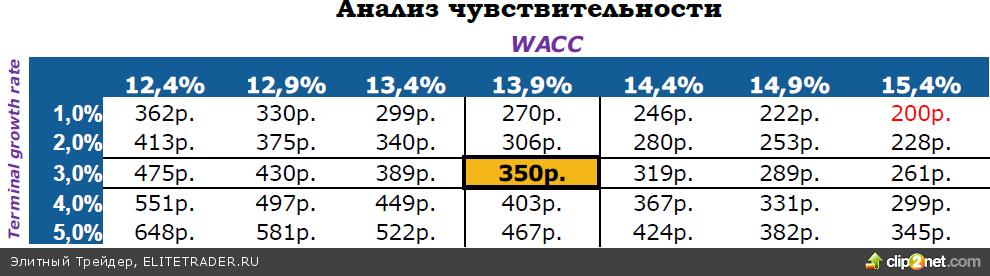 Анализ чувствительности показывает, что в более оптимистичных предпосылках справедливая стоимость Мечела может быть значительно выше, и даже существенно более негативные предпосылки не предполагают заметного падения акционерной стоимости с текущих уровней