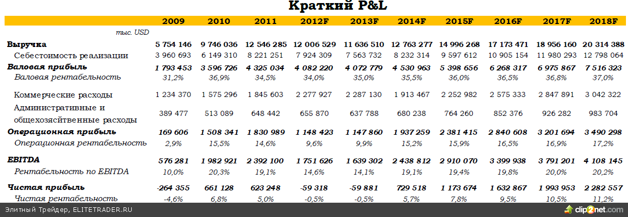 Скорректированная EBITDA по итогам года составит порядка $1,87 млрд., чистая прибыль без учета возможных эффектов курсовых разниц – в районе нуля. В 2013 году показатели будут еще немного хуже. Ожидаем восстановления, начиная с 2014 года.