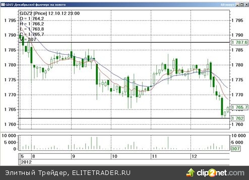Декабрьские фьючерсы на золото (GDZ2, -1.24%) по итогам завершившейся недели умеренно подешевели. После недавней неудачной попытки преодоления долгосрочного сопротивления, расположенного в районе 1800 – 1810 долларов, контракты на желтый металл «сползли» к ближайшей поддержке, находящейся на уровне 1760 долларов. Таким образом, фьючерсы на золото продолжили консолидацию в рамках трёхнедельного диапазона с границами 1750 –1800 долларов.