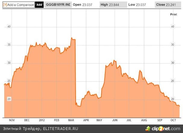 Во-первых, премьер Греции Антонис Самарас заявил, что ожидает выделения очередного транша финансовой помощи до начала саммита ЕС, намеченного на 18 октября. Буквально на днях страна подпишет необходимое для этого соглашение с тремя международными кредиторами (ЕС, ЕЦБ и МВФ). Именно этого рынки ждут от Греции.