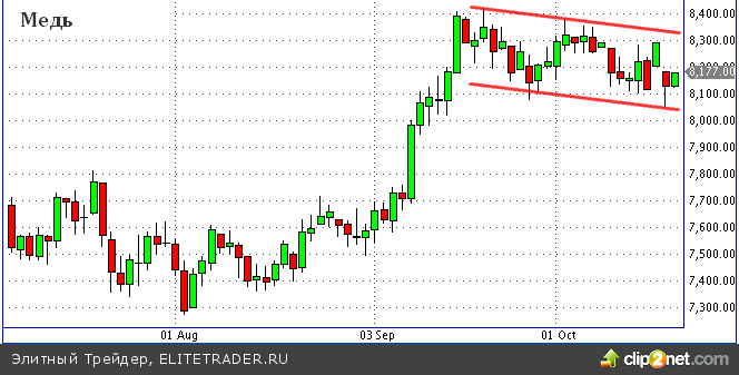 С технической точки зрения, на графике меди легко заметить формирование модели продолжения тренда "Флаг", что понетциально может привести к сильному росту, в случае если будет пройдена верхняя граница фигуры, а внешние фундаментальные факторы не будут противоречить импульсу.