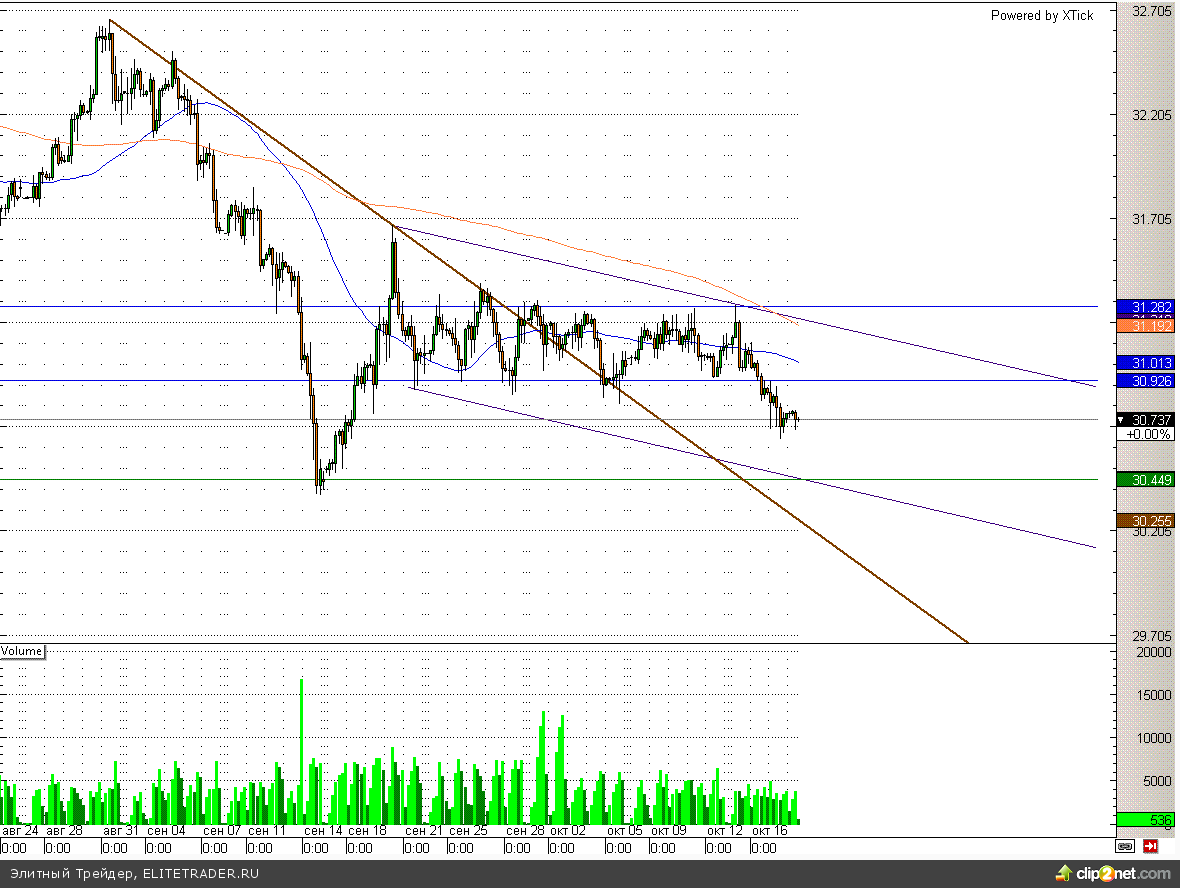 Рубль продолжает укрепляться, и ближайшая серьезная поддержка находится лишь на отметке 30,45, данный уровень, вероятно, мы увидим уже в самое ближайшее время.