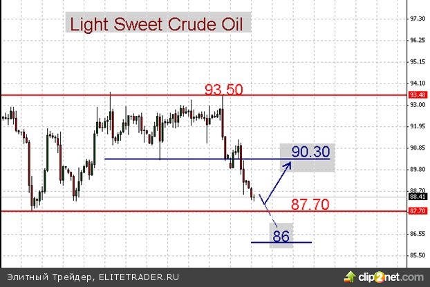 По нашим наблюдениям, отсутствие в календаре фундаментальных событий свежих идей сосредоточило котировки “черного золота” на внешних факторах. Инвесторы продолжили сокращать накопленные длинные позиции на фоне усилившегося в минувшую пятницу беспокойства относительно мировой экономики. Котировки Light Sweet, оттолкнувшиеся от уровня 4-х недельного сопротивления 93,50$ ускорили медвежью динамику по направлению к октябрьским минимумам 87,70$. Новости о возобновлении работы канадского нефтепровода Keystone, послужили дополнительным фактором для снижения цен на американскую нефть. В свою очередь, фьючерсы Brent сумели удержаться от существенного снижения за счет сохраняющейся напряженной ситуации на геополитической арене.