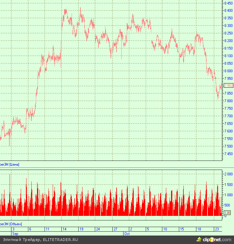 В среду были опубликованы сильные данные по индексу PMI КНР – показатель вырос в октябре с 47.9 до 49.1 пунктов, при этом индикатор растет уже второй месяц подряд. Китай является ключевым потребителем металлов, поэтому котировки commodities сразу отреагировали на статистику. Трехмесячные фьючерсы меди, которые вчера приблизились к отметке двухмесячной давности - $7800, сегодня утром отскочили до $7900.