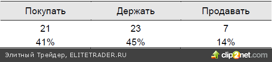 По 21 бумаге выставлена рекомендация «покупать», по 23 – «держать», по 7 – «продавать».