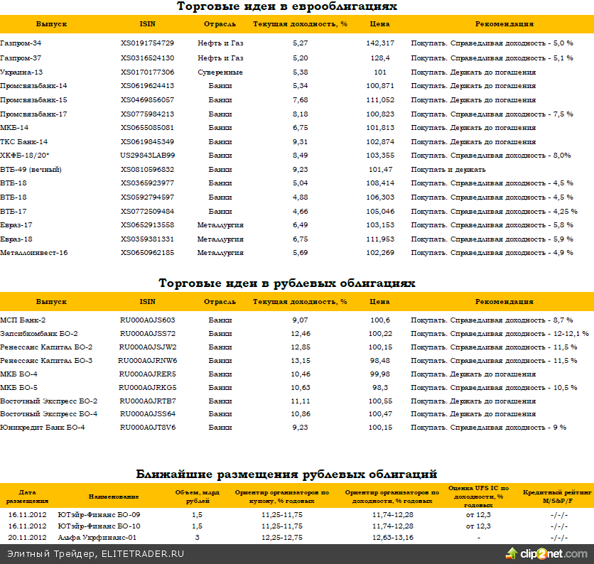 В последние дни наблюдается ощутимое снижение «спроса на риск», что привело к довольно сильным продажам в наиболее волотильных евробондах. Несмотря на это, многие из них все еще находятся вблизи своих годовых максимумов. С учетом ситуации, которая сейчас складывается на рынке, мы бы порекомендовали сократить дюрацию своего портфеля. Риск дальнейшего снижения в этих бумаг в ближайший месяц сохраняется