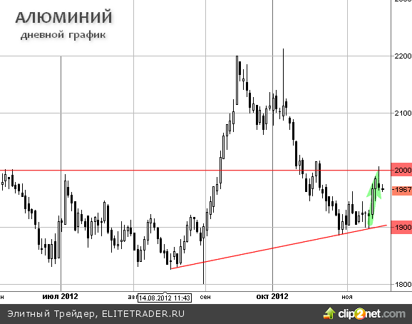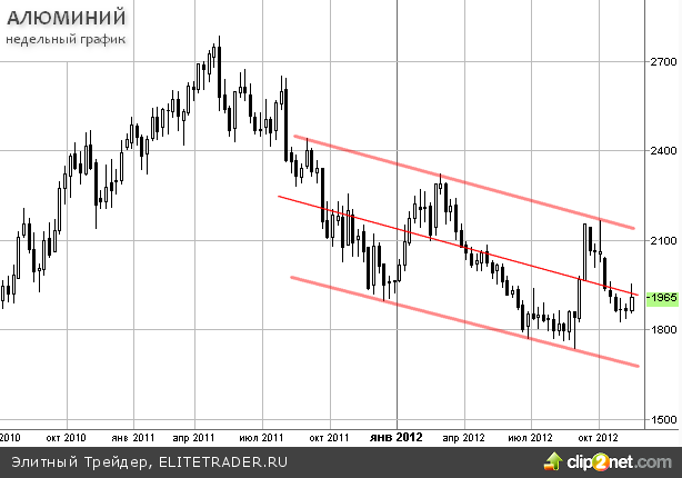 Данная отметка важна не только как "психологический" уровень. Именно через эту зону проходит середина нисходящего годового канала, в котором на данный момент находится алюминий. Если закрытие недели (этой, или нескольких ближайших) будет выше этой линии, высока вероятность стремительного роста к к верхней границе канала на уровне $2150 за тонну.