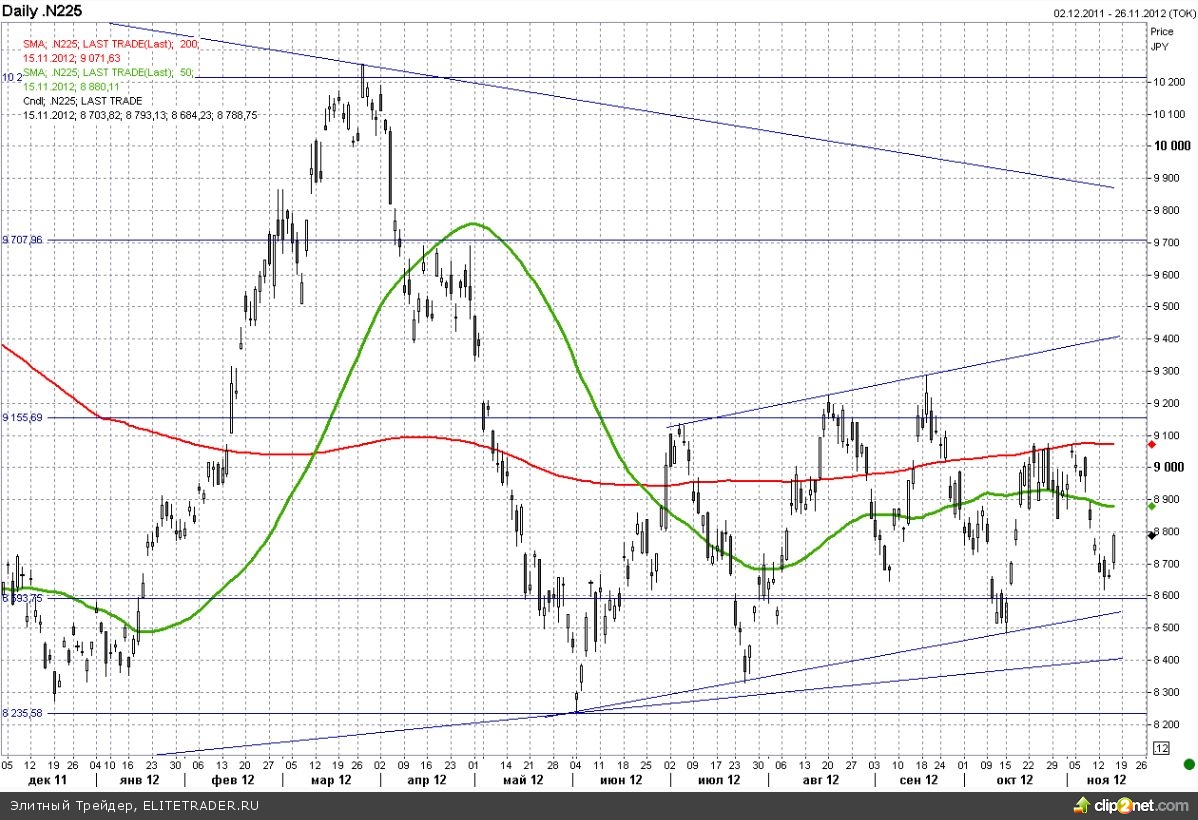 Азиатские фондовые индексы сегодня преимущественно снижаются, вслед за вчерашним падением американского рынка, и лишь японский индекс Nikkei растет против своих коллег. Поводом для роста послужило заявление премьер-министра Есихико Ноды о готовности провести досрочные выборы нижней палаты парламента уже 16 декабря. О намерении сделать этот шаг, в обмен на одобрение оппозицией продвигаемых премьером законопроектов, говорилось и раньше, во время утверждения закона о повышении непопулярного налога с продаж до 10%. На этот раз Нода просит об одобрении дополнительного выпуска гособлигаций, без которых в стране скоро закончатся деньги. В последнее время Демократическая партия Японии, которую Нода и представляет, существенно теряет доверие граждан.