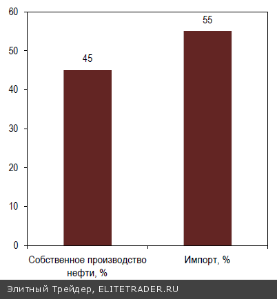 По состоянию на 2011 год доля импорта превышала собственное производство нефти и газа, но сейчас доля собственного производства значительно превышает импорт